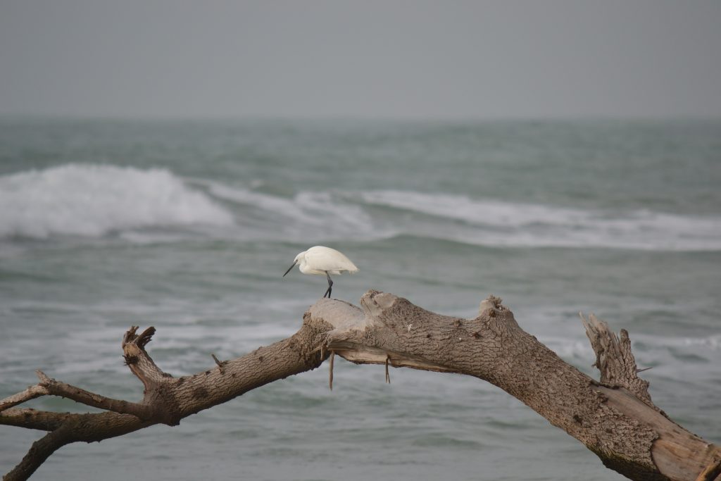 Su un tronco levigato dal mare riposa un’elegante garzetta, con le onde della foce dell’Irminio sullo sfondo. Questo ambiente costiero, parte della Riserva Naturale Orientata Speciale Biologica Foce del Fiume Irminio, è un rifugio ideale per molte specie di uccelli acquatici che qui trovano cibo e tranquillità durante le migrazioni.